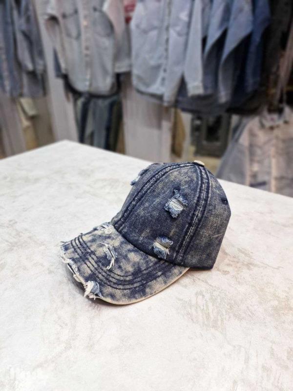 کلاه اسپرت جین زاپ دار رنگ اسیدی برفکی