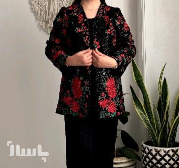 این کار از پارچه مخمل سوزندوزی و پولکدوزی تهیه شده . قد کت حدود 85 س است. با این کت زیبا در مهمانیها بدرخشین.