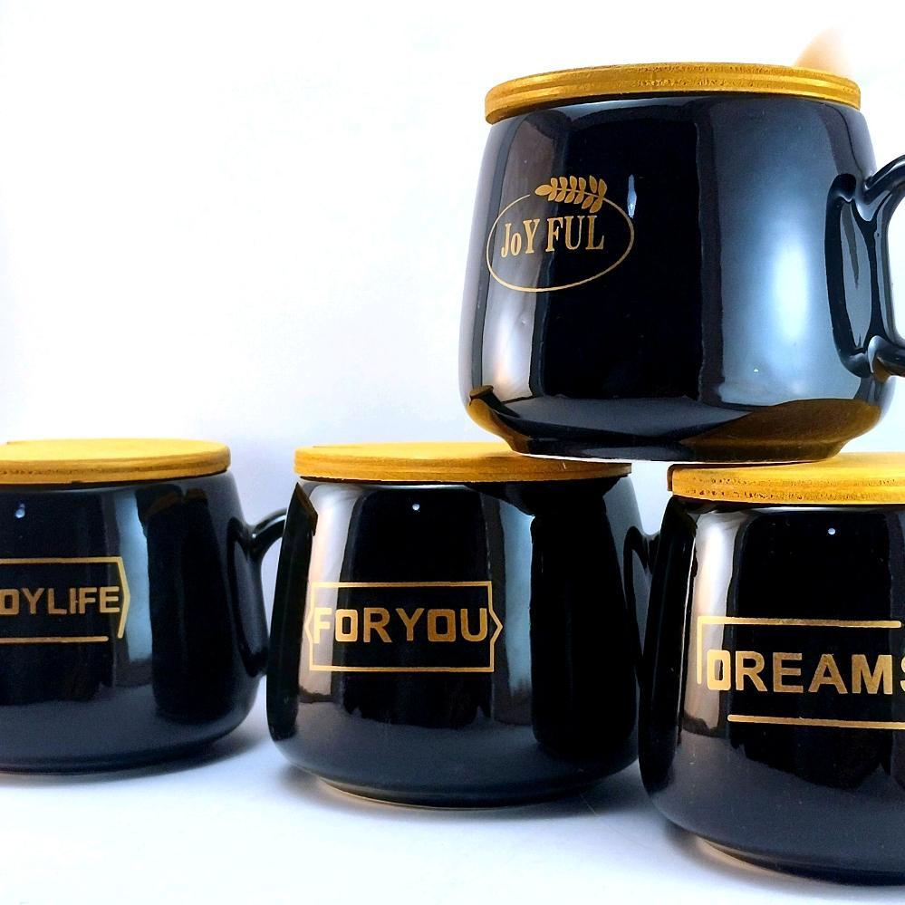 ماگ مشکی درب دار ارسال رایگان همراه قاشق