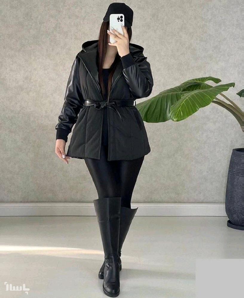 کاپشن آستین چرم زنانه