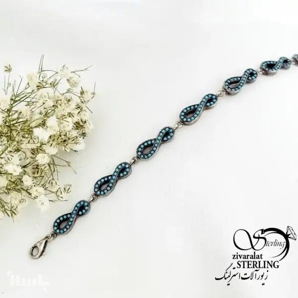 دستبند نقره بینهایت آبی با زنجیر رزگلد کد 19859