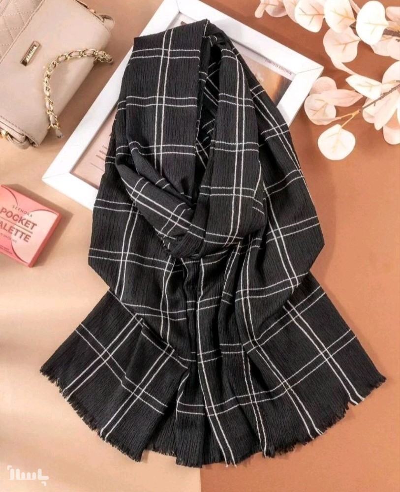 شال پفکی چهارخونه منگوله دار