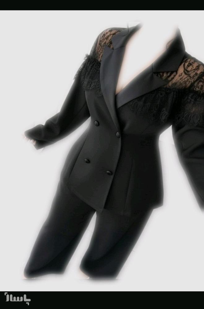 مانتو مجلسی کرپ مدل دوتیکه مانتو شلوار مازراتی جت بلک