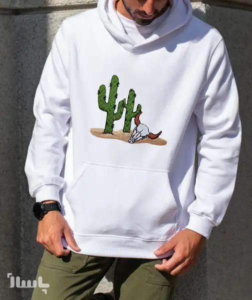 هودی مردانه پنبه ای پشت کرک طرحدار طرح کاکتوس