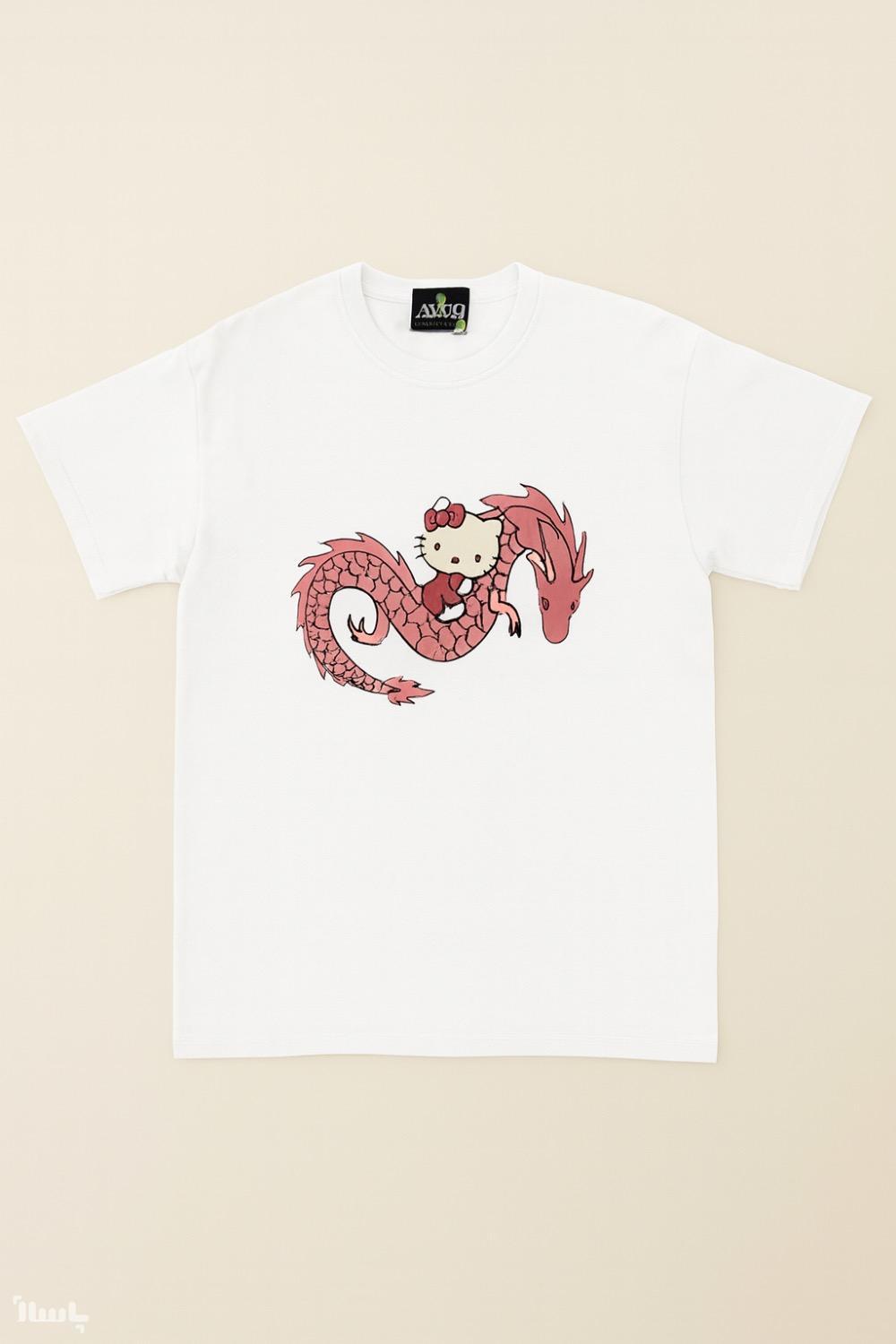 تیشرت سفید لش اورسایز دخترانه زنانه هلوکیتی و دراگون