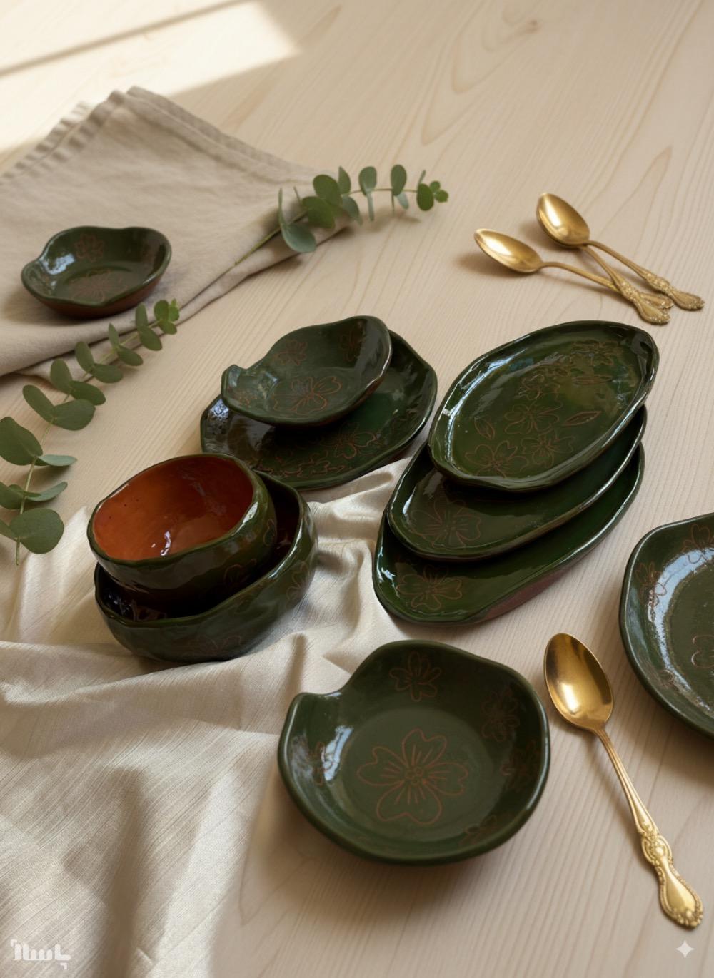 ست غذاخوری دستساز سفالک؛ هر قطعه با عشق و دقت ساخته شده، با لعاب با کیفیت و رنگهای طبیعی