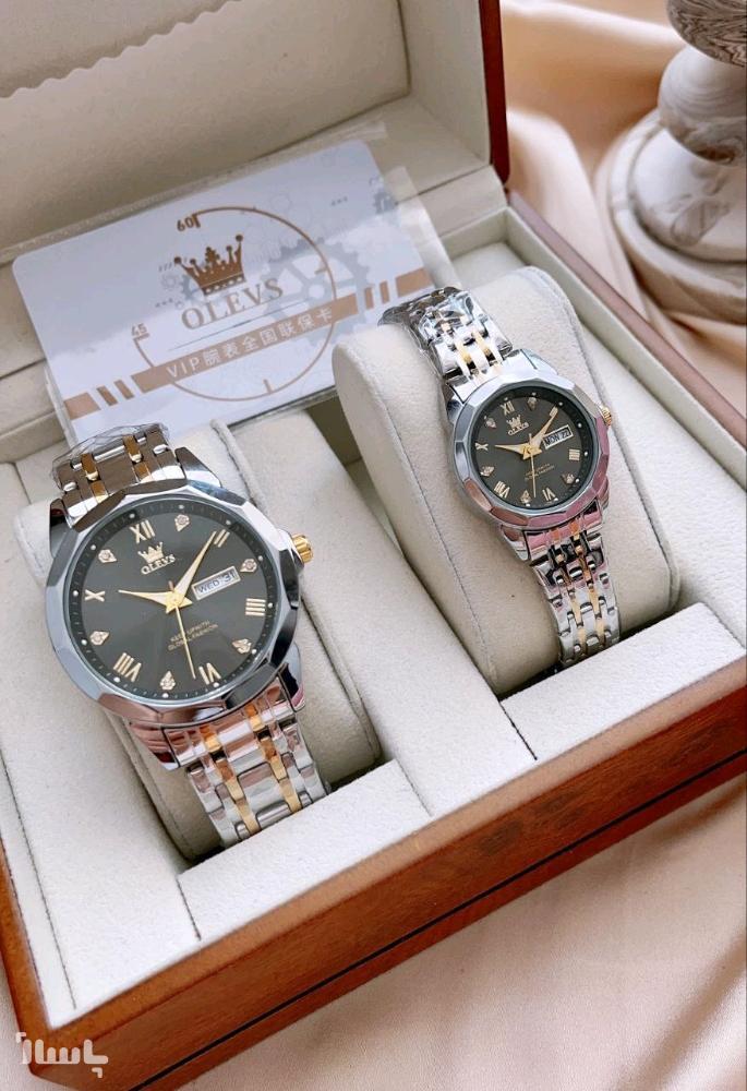 ساعت ست زنانه مردانه استیل ضد آب شیشه ضد خش صفحه مشکی الوز