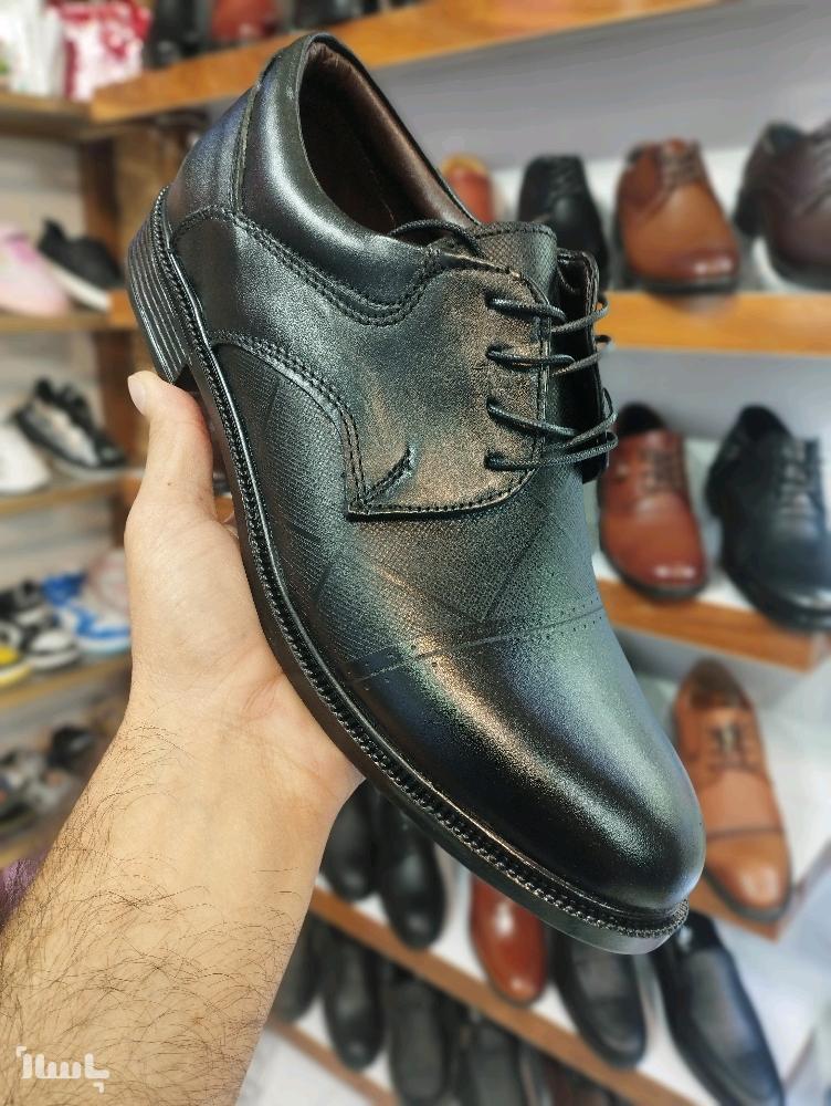 کفش تمام چرم طبیعی مردانه لیزری با رویه چرم گاوی و آستر و کفی چرم طبیعی گوسفندی و زیره پی وی سی سایز بندی 40 تا 44
