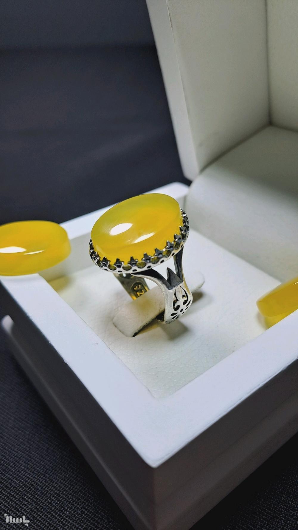 سنگ عقیق زرد (حکاکی شرف شمس پشت نگین 19 فروردین )(بدون حکاکی شرف شمس هم قابل سفارشه )