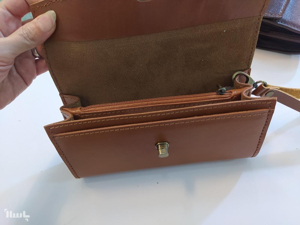 کیف دستی زنانه با چرم طبیعی گاوی و آستر کشی شده، در ابعاد 20×11، در سه رنگ عسلی، قهوهای ، مشکی، مناسب برای موبایل ، پول نقد، کارت بانکی، خودکار