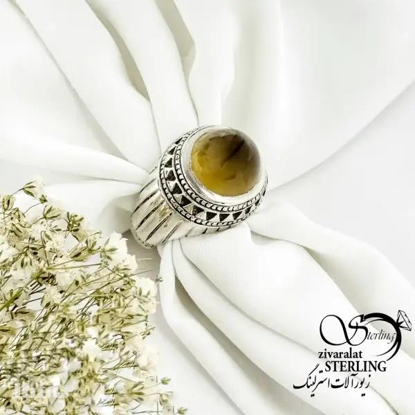 انگشتر با سنگ عقیق جزع ذکر دار نقره ایتالیا رکاب دستساز کد 20207