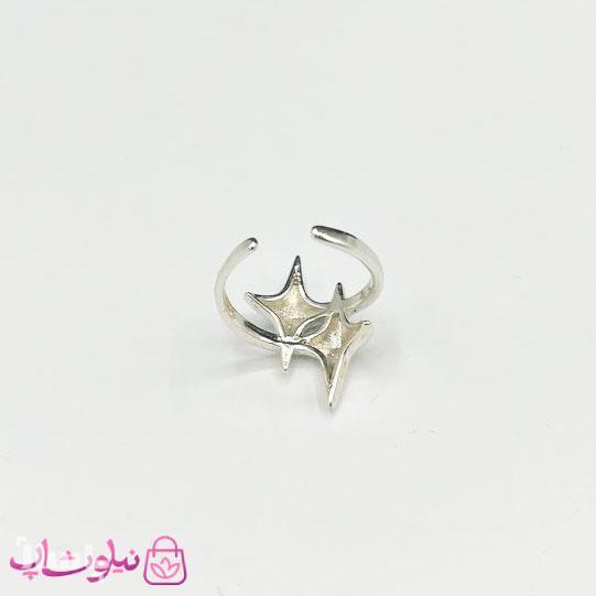 انگشتر زنانه طرح دو ستاره حلقه آبکاری نقره کد 150
