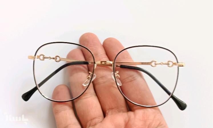 عینک طبی زنانه دخترانه سایز بزرگ رنگ طلایی دور حدقه مشکی