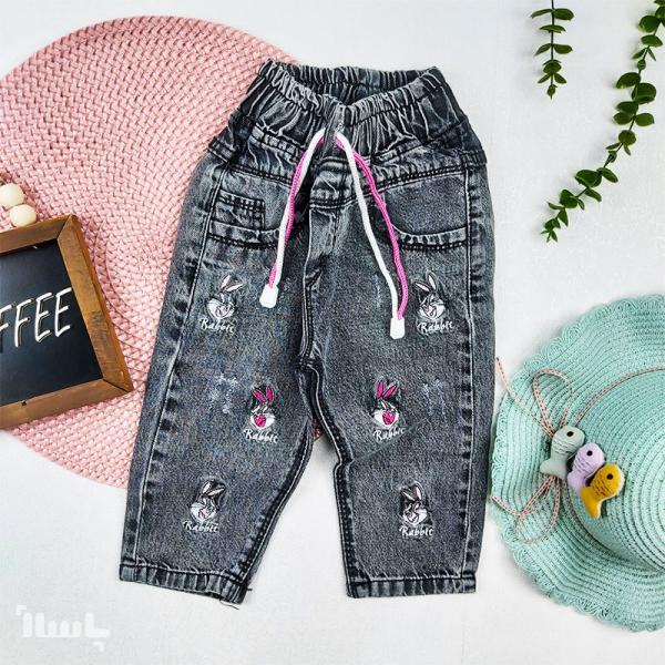 شلوار جین مام زغالی دخترانه خرگوش 2 تا 7 سال کد 10012