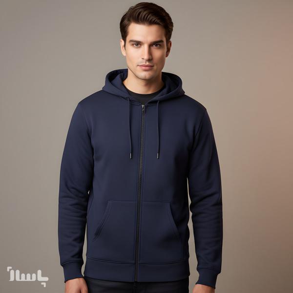 سویشرت دورس کلاهدار زیپی سهنخ پنبه داخل کرک رنگ سرمه ای – گرم، راحت و باکیفیت