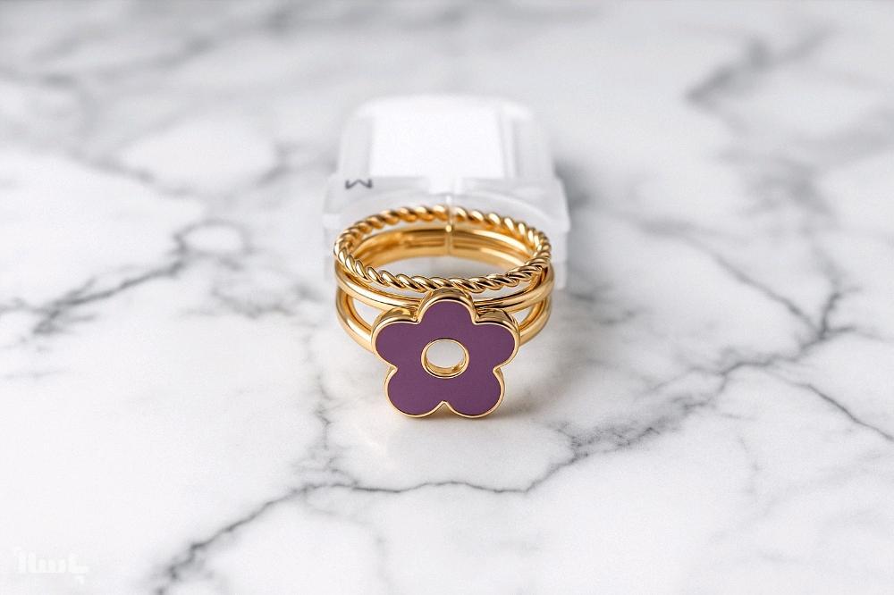 پک 3 عددی انگشتر گل بنفش و طلایی