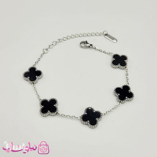دستبند دخترانه مدل ونکلیف مشکی نقره ای کد 1398