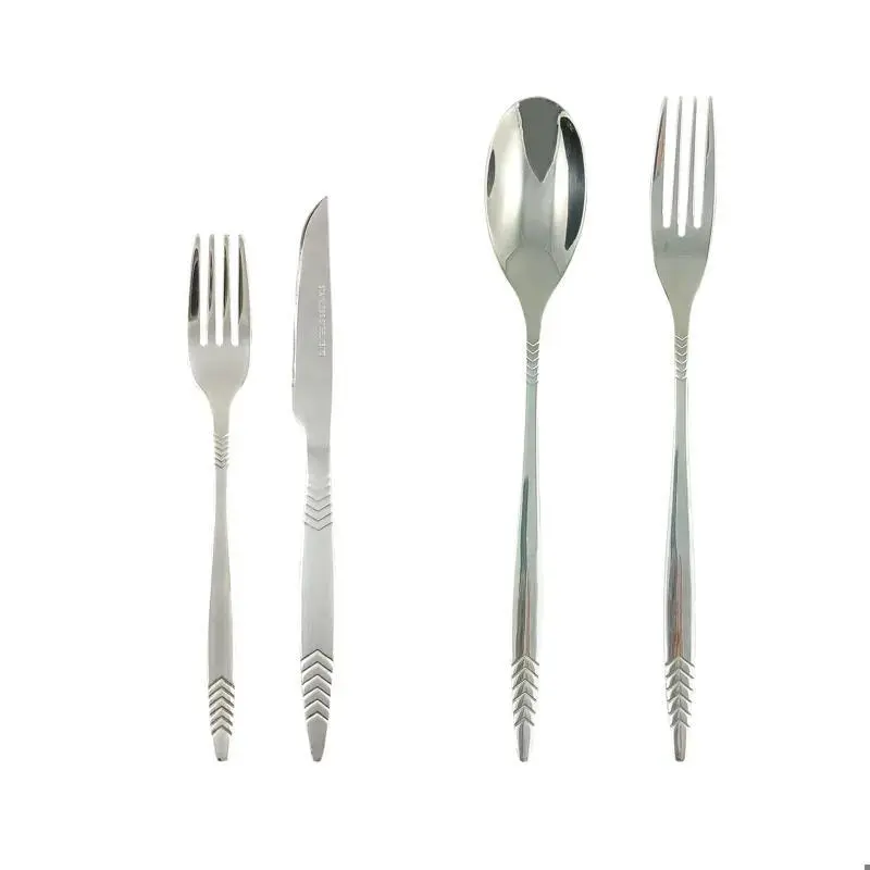 هر سرویس دارای 6 عدد قاشق غذاخوری و 6 عدد چنگال غذاخوری و 6 عدد کارد میوه خوری و 6 عدد چنگال میوه خوری می باشد.