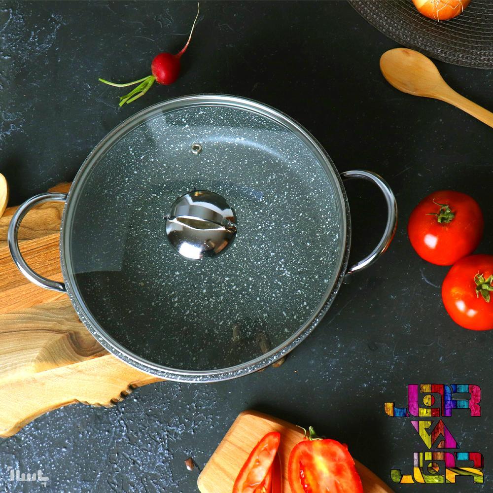 تابه با دو دسته با روکش گرانیت و درب پیرکس در دو سایز برند معتبر جلامبین