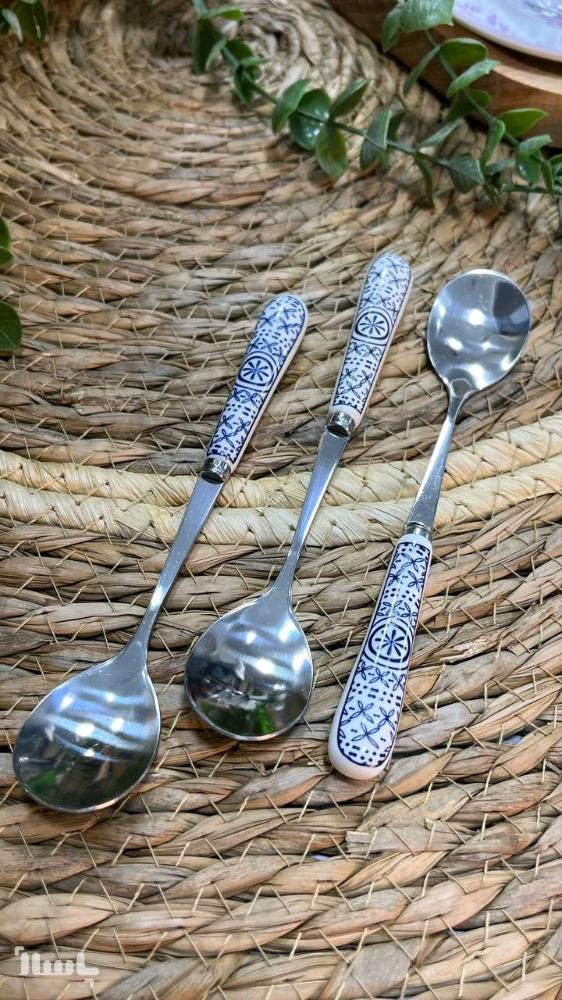 قاشق و چنگال دسر خوری دسته سرامیکی دنی هوم طرح ایکس
