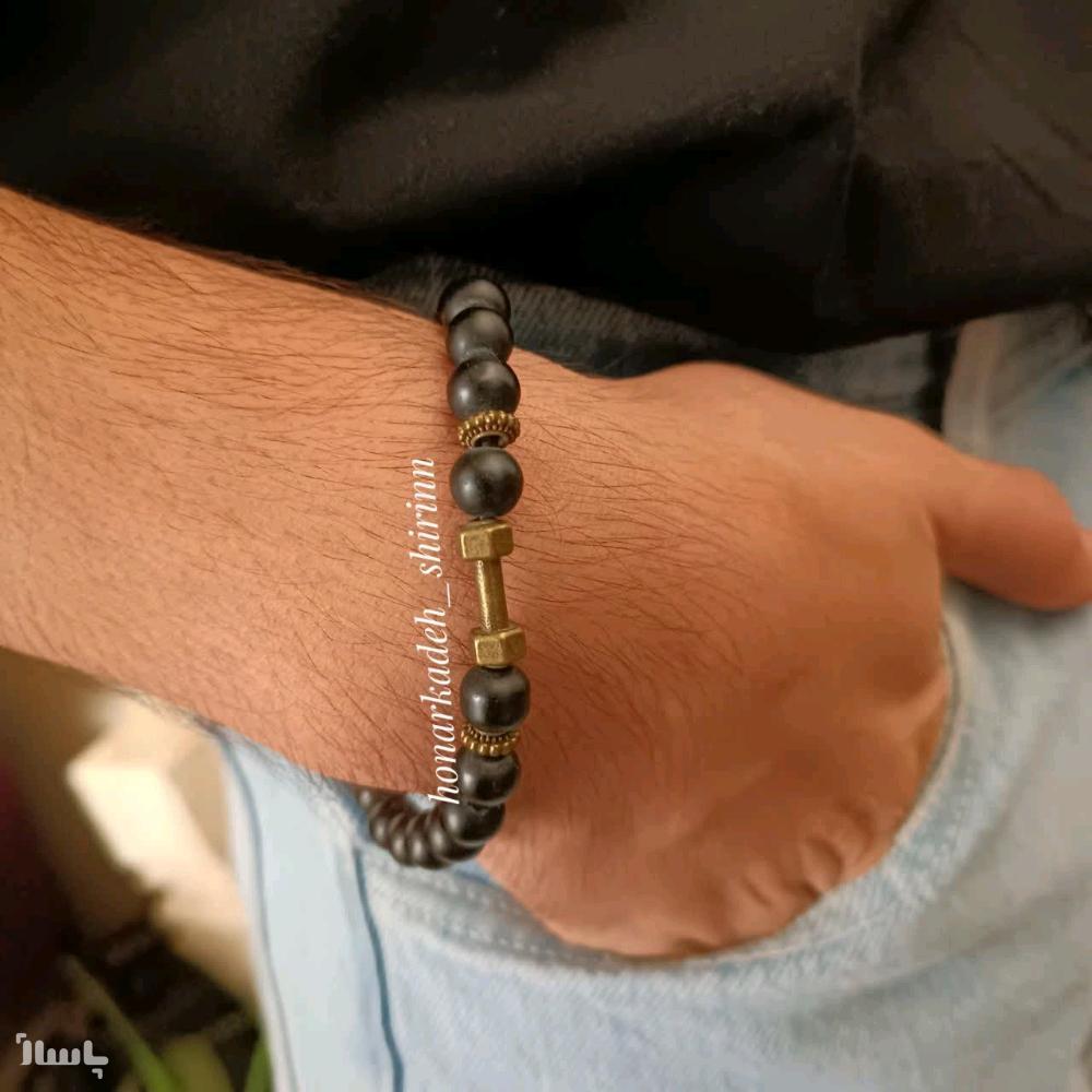 دستبند مردانه سنگ اونیکس مشکی با طرح دمبل