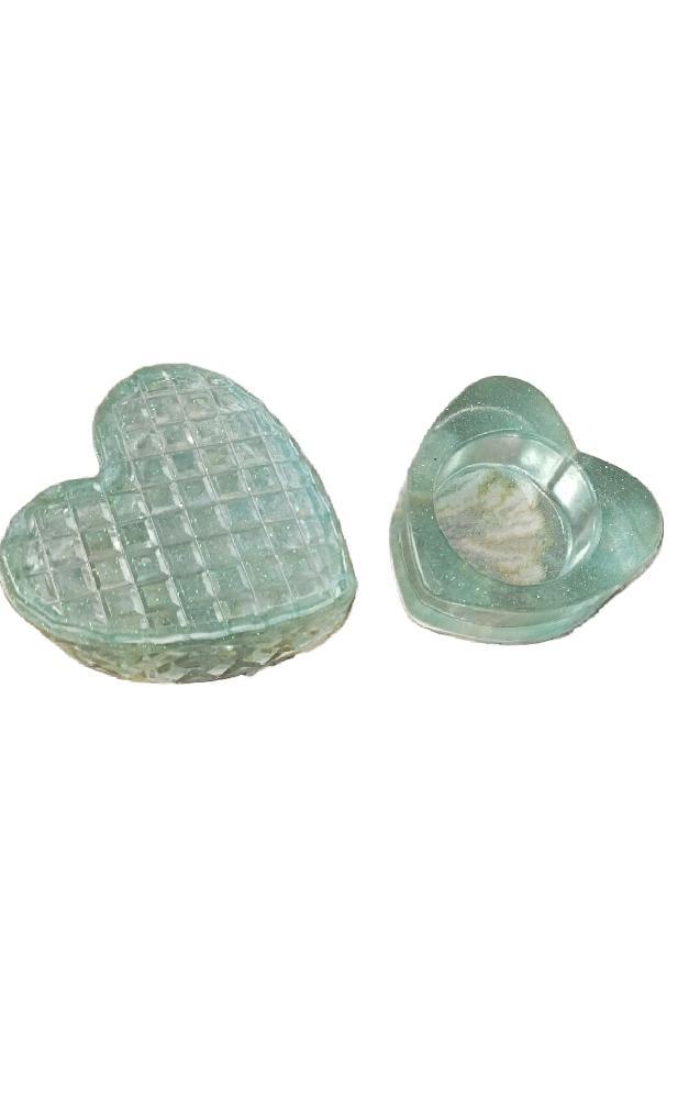 ست دوتایی جعبه وجاشمعی قلبی سبز رزینی