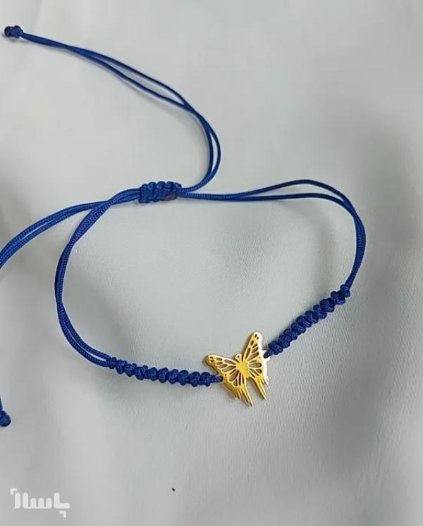 دستبند پروانه استیل دخترانه با بند بافت آبی کاربنی