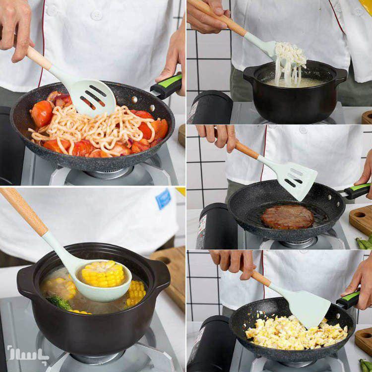 سرویس کفگیر ملاقه و ابزار آشپزی 12پارچه سیلیکونی