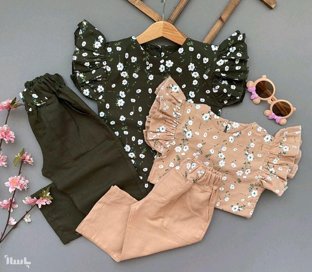 تیشرت شلوار دخترانه ی زیبا با پارچه ی سوپر لنین خاص روزهای گرم سال