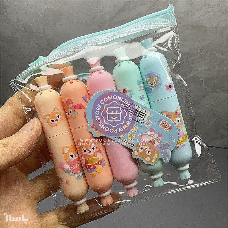 ماژیک هایلایتر فانتزی پینترستی/ماژیک علامت زن فانتزی کد 85209438 cute students highlighter markers 5 pcs stationery www.poonelstore.com