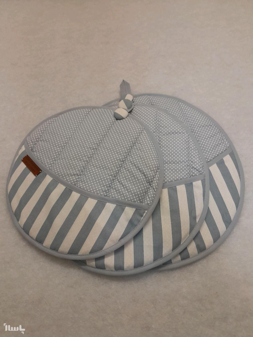 پارچه مصرفی در این محصول از جنس کتان نخ می باشد که 100٪پنبه ای بوده وعلاوه بر مقاوم بودن در برابر حرارت قابلیت جذب بالای بخار آب را دارد و در بین دو لایه از این پارچه پشم شیشه فشرده استفاده شده که آنهم در جذب رطوبت تاثیر به سزایی دارد و این محصول با نوار اریب کتان تزئین شده که علاوه بر زیباتر شدن محصول در برابر حرارت نیز مقاوم می باشد.
