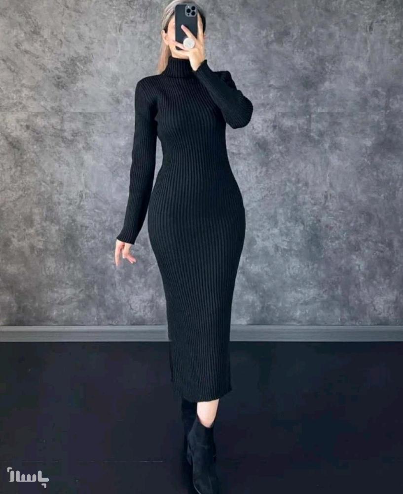 پیراهن مهمانی زنانه پشمی مدل ماکسی بافت یقه اسکی