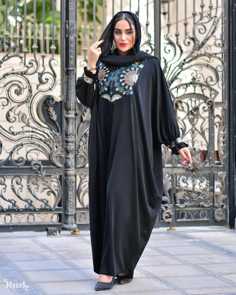 مانتو مجلسی کرپ اسود مدل عبایی مهنا