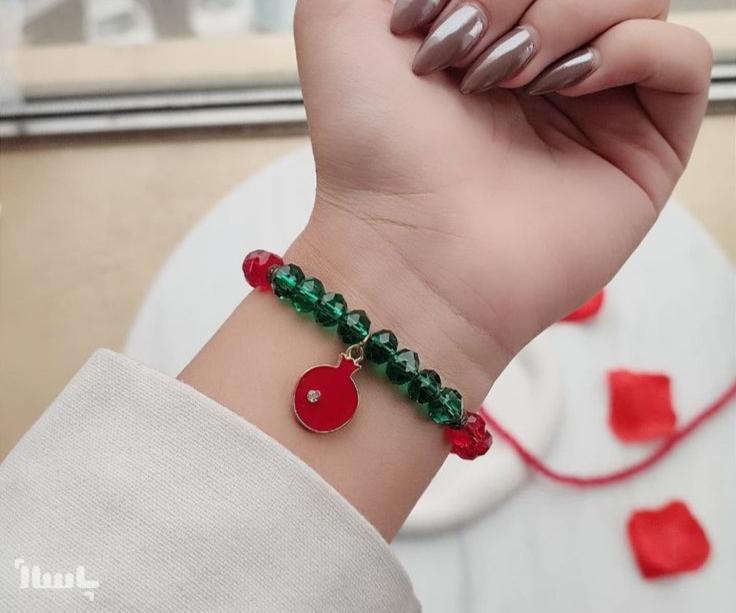 دستبند یلدایی سبز و زرشکی با پلاک انار