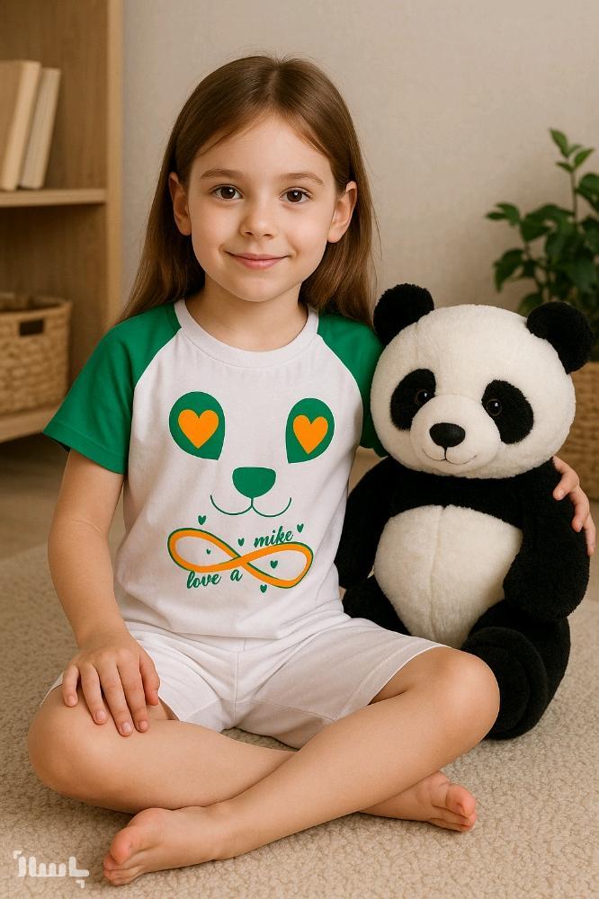 تیشرت شلوارک دخترانه طرح پاندا سایز 50 55 و 60