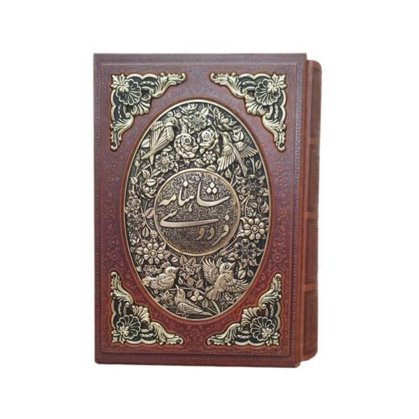 کتاب نفیس شاهنامه ی فردوسی چرمی طرح چرم ومس همراه با قاب کشویی قطع وزیری