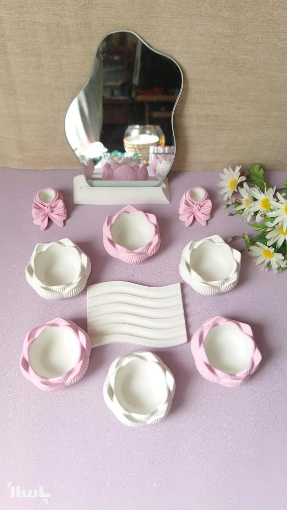 6 ظرف نیلوفر، یک استند موج دار، پایه آینه، دو جاشمعی