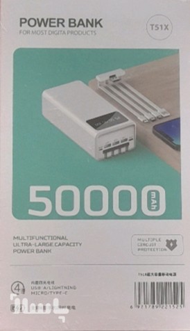 پاور بانک KT T51X یک باتری خارجی قابل حمل جهانی با ظرفیت 50000 میلی آمپر ساعت است که همیشه می تواند گجت های مورد علاقه شما را در هر کجا که هستید شارژ کند: در سفر، در تعطیلات یا زمانی که برق خاموش است. این دستگاه دارای: 3 پورت USB برای شارژ دستگاه های خارجی (گوشی های هوشمند، پخش کننده، تبلت، رهیاب، دوربین، سیگار الکترونیکی، واکی تاکی و غیره)، 2 خروجی باقی مانده: Type-C، Micro-USB، به طور مستقیم برای شارژ شخصی . ظرفیت پاوربانک به طور متوسط برای 9-12 بار شارژ کامل کافی است. برای سهولت بیشتر در استفاده از دستگاه، 4 کابل داخلی وجود دارد: Micro-USB / Type-C / Lightning iPhone / USB (امکان جدا کردن کابل ها وجود دارد، آنها به درگاه USB متصل هستند). بدنه پاوربانک KT T51X از پلاستیک ABS ساخته شده است که باعث افزایش طول عمر دستگاه می شود. باتری لیتیوم پلیمری است که به عمر طولانی پاوربانک کمک می کند. در پنل جلویی نشانگر شارژ وجود دارد که به کاربر کمک می کند تا میزان شارژ دستگاه را به دقت تعیین کند. شارژ کامل یک پاوربانک با چنین ظرفیتی حدود10 ساعت طول می کشد.