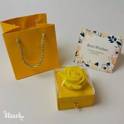 جعبه نیم ستی زرد کشویی رز جاودان با بگ دستی