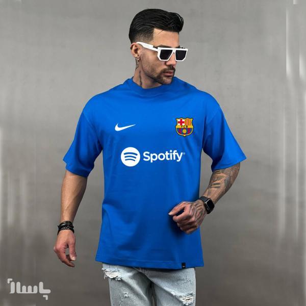 تیشرت تیم فوتبال لباس بارسلونا رنگ آبی کاربنی
