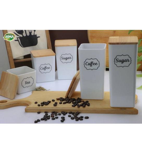 دارای نوشته انگلیسی Tea, Coffee, Sugar: برای تشخیص آسان محتویات بانکه ها