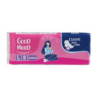 نوار بهداشتی بالدار پنبه ای گود مود مدل Classic thick سایز بزرگ صورتی بسته 8 عددی