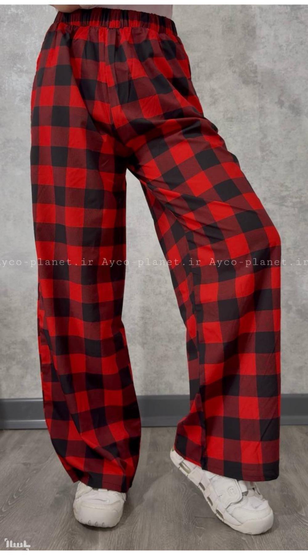 این شلوار پیژامه کرپ چهارخونه قرمز مشکی با طرح خاص و رنگهای جذاب، یه انتخاب بینقصه برای استایل روزمره
