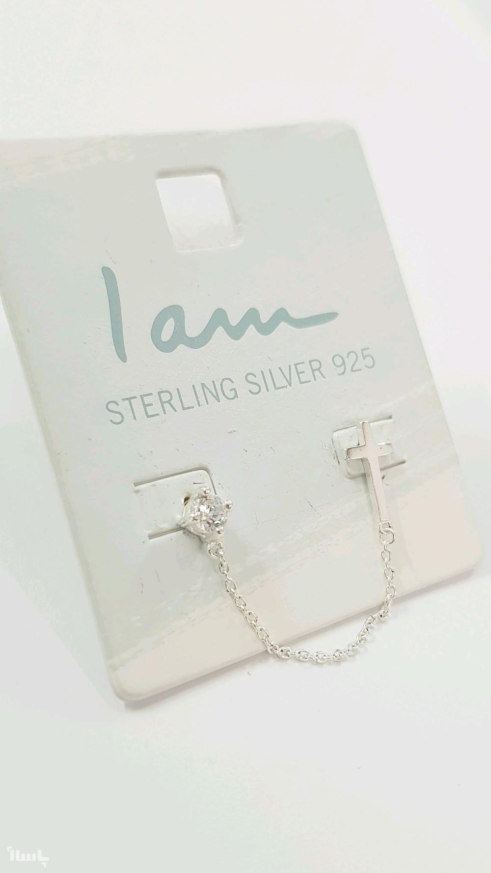 گوشواره نقره عیار 925 طرح صلیب ، زنجیردار ، بسیار درخشان و زیبا ، ساخت کشور تایلند ، شناسنامه و بارکد دار ، عیار حک شده روی گوشواره