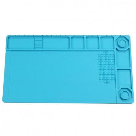 این صفحه مناسب برای کار مونتاژ و یا تعمیر موبایل و یا مونتاژ بردهای الکتریکی می باشد. جنس این صفحه از سیلیکون است و نسوز می باشد. دارای بخش های مختلف جهت نگهداری آی سی های SMD و دیپ ، لوازم مونتاژ ، صفحه ی برد PCB یا برد موبایل و … می باشد. این پد نسوز 8 مکان مخصوص جای نگهداری پیچ و قطعات را دارد. همچنین دارای خط کش 25cm است.