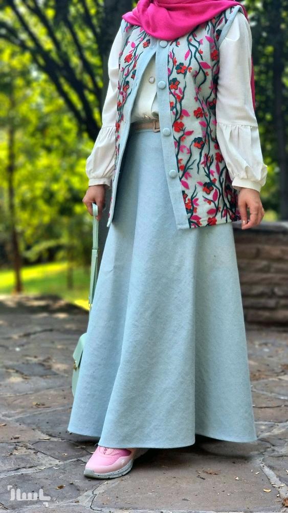 این دامنمون جنسش جین ضخیم هست و ایستایی بالایی داره، زیپ و دکمه میخوره ، قدش تا 100 قابل تغییر هست