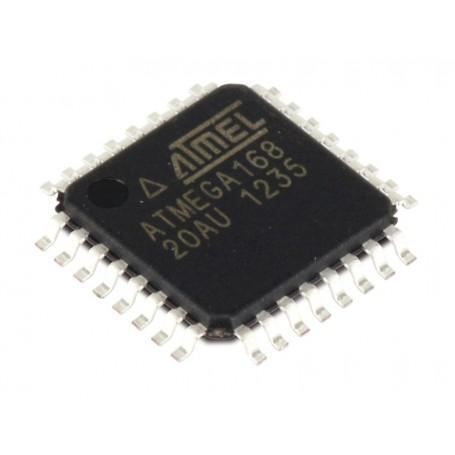 میکروکنترلر ATMEGA168PA دارای هسته پردازنده 8 بیتی AVR (پکیج TQFP-32) بوده و با فرکانس 20 مگاهرتز کار می کند. این میکروکنترلر 16 کیلوبایت حافظه FLASH روی تراشه را فراهم می کند. میکروکنترلر ATMEGA168PA دارای 23 پین ورودی/خروجی و پروتکل های ارتباطی: I2C, SPI UART/USART می باشد. میکروکنترلر ATMEGA168PA دارای ولتاژ کاری 2.7 تا 5.5 ولت بوده و در محدود دمایی -40 تا +85 درجه سانتی گراد کار می کند.
