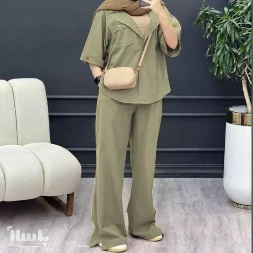 ست مانتو شلوار زنانه لنین نچرال مدل ماریانو