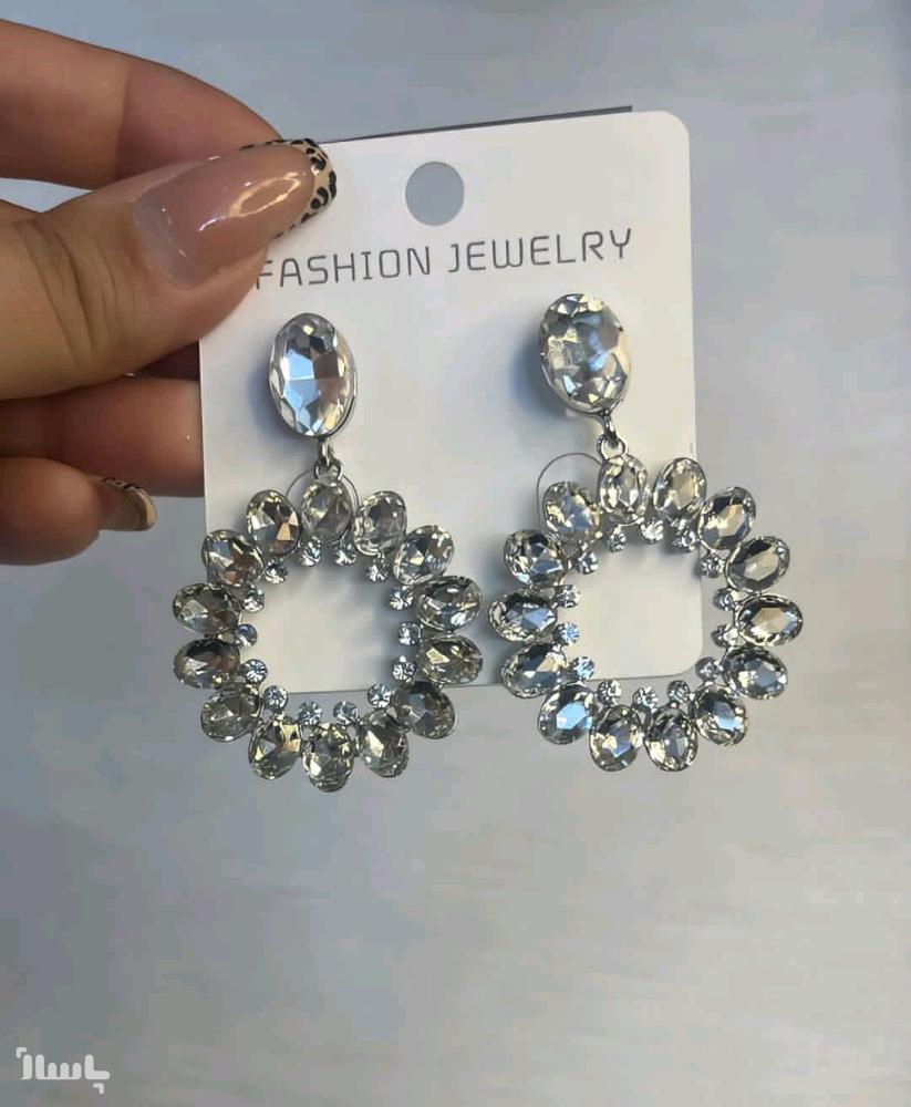 گوشواره تمام نگین زنانه استیل رنگ ثابت با ضمانت بسیار شیک زیبا