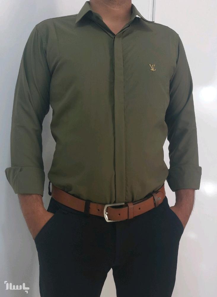 پیراهن دوشین سبز دکمه مخفی مجلسی